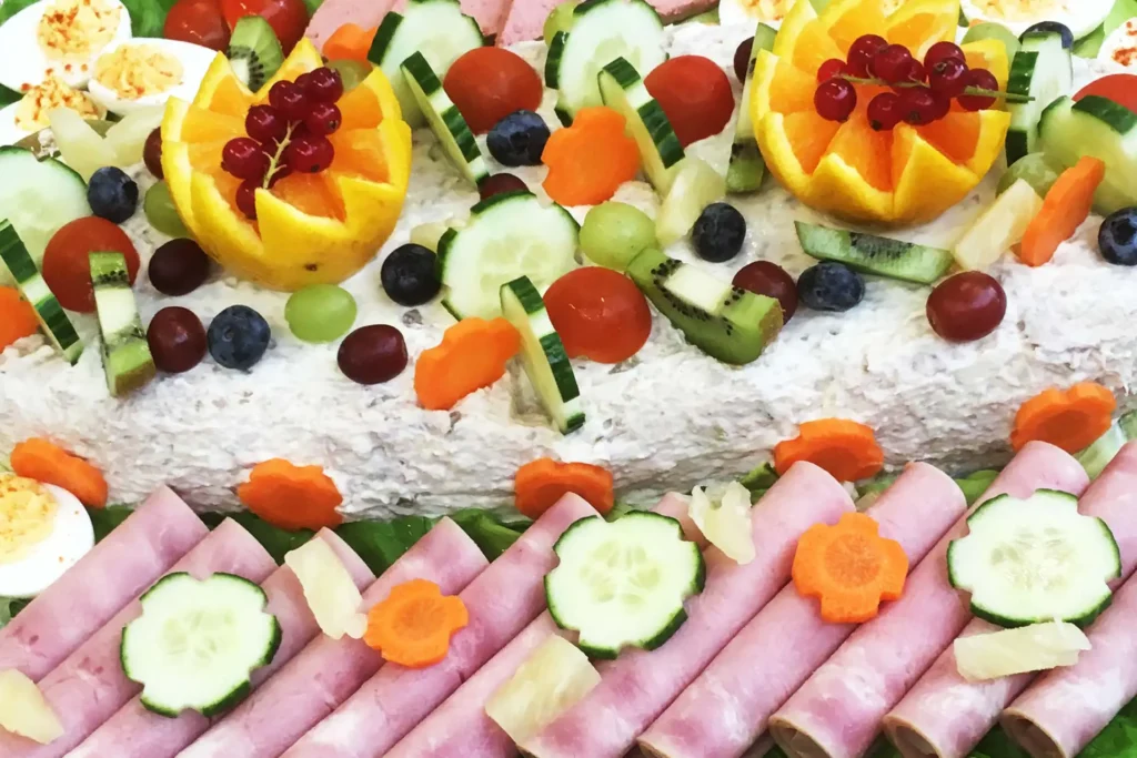 - Achterham gevuld met asperges en gevulde eieren
